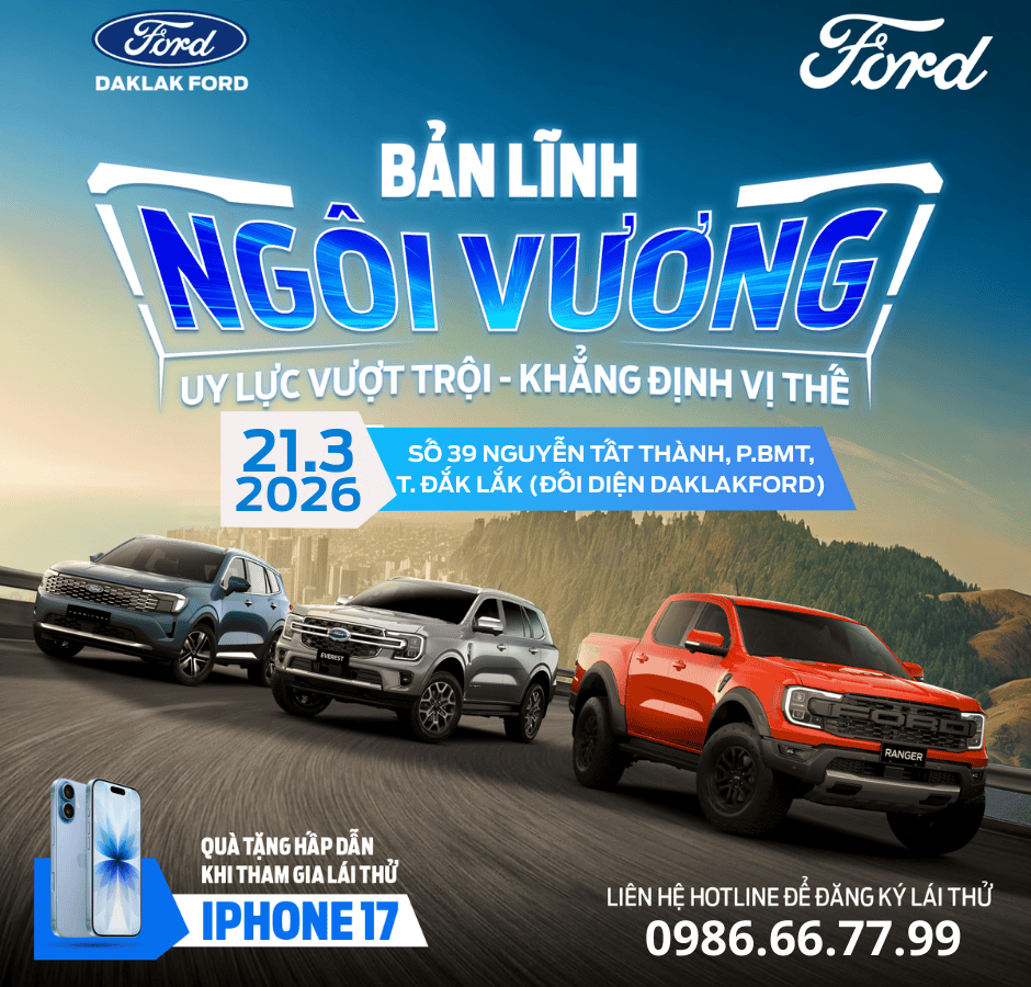 Hẹn gặp quý khách hàng tại 39 Nguyễn Tất Thành,P.BMT, T. Đắk Lắk (Đối diện Showroom DakLak Ford) vào 𝐓𝐡𝐮̛́ 𝐁𝐚̉𝐲, 𝐧𝐠𝐚̀𝐲 𝟐𝟏.𝟎𝟑.𝟐𝟎𝟐𝟔