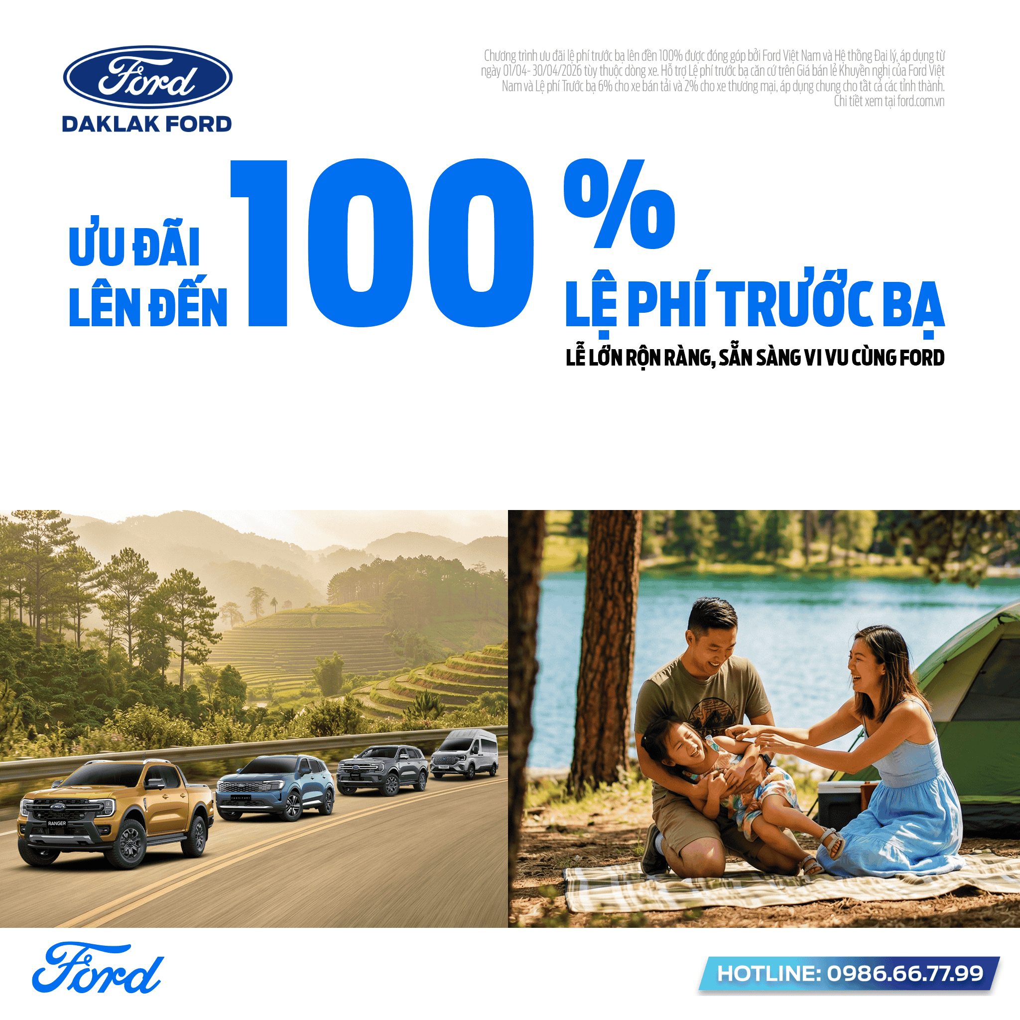 Đồng hành cùng bạn khám phá những vùng đất mới, Ford Việt Nam mang đến ưu đãi đặc biệt dịp lễ lớn, giúp bạn sở hữu chiếc xe Ford yêu thích với chi phí tối ưu: HỖ TRỢ LÊN ĐẾN 100% LỆ PHÍ TRƯỚC BẠ
